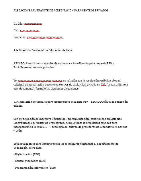 Además de un último adjunto donde realizamos las alegaciones pertinentes con un modelo similar a este: